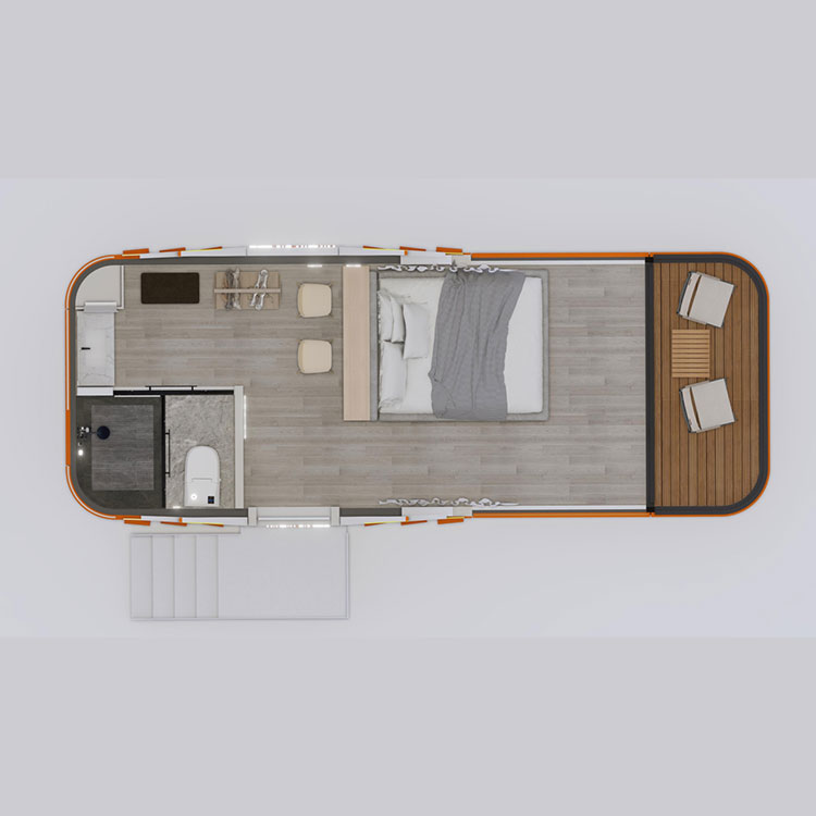 ZG-V6 Mobilna hotelska hiša Scenic area,Izdelek je dostavljena kot celota in pripravljena za vselitev.Tovarna obsega: komplet struktura, notranja in zunanja dekoracija ter inteligentni nadzor celotne hiše sistem, klimatska naprava, bojler, strojna oprema, kopalnica, razsvetljava, ozvočenje, trda dekoracija, svež zrak in pohištvo itd.